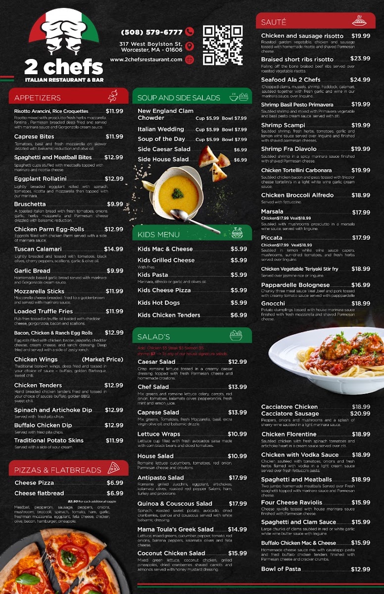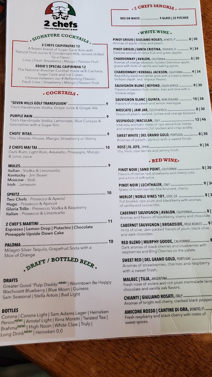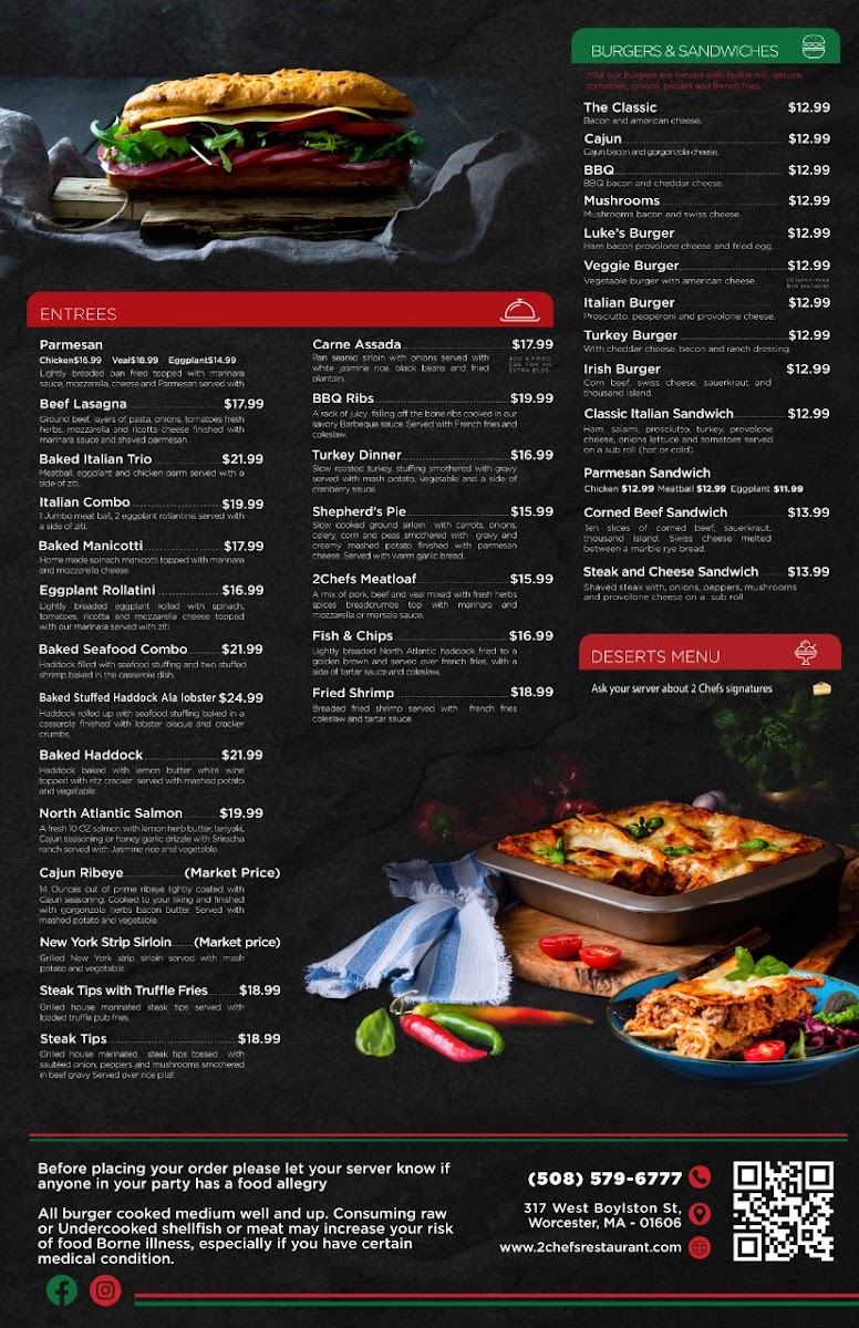 Ground beef, layers of pasta, onions, tomatoes, fresh herbs, mozzarella and ricotta cheese finished with marinara sauce and shaved Parmesan.