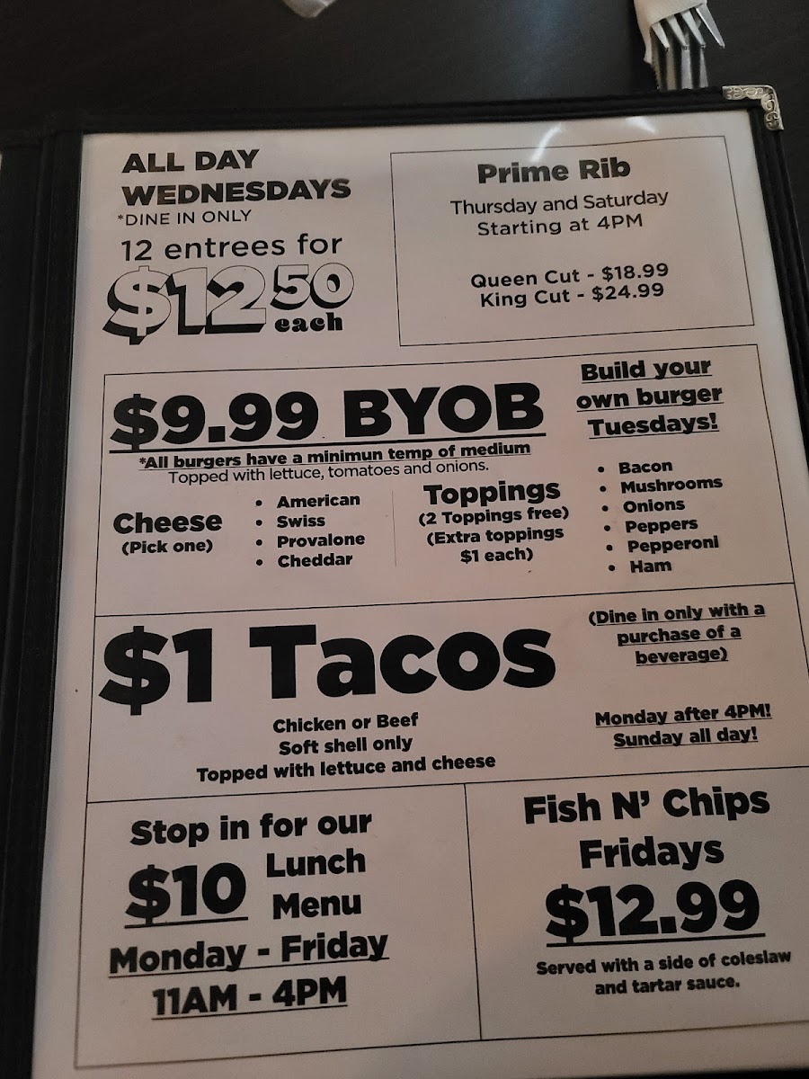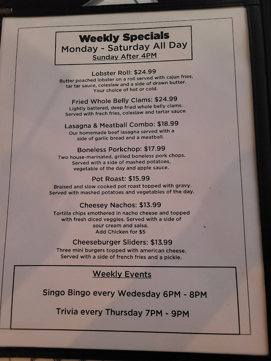 Lightly-breaded North Atlantic haddock fried to a golden brown and served over French fries with a side of tartar sauce and coleslaw.